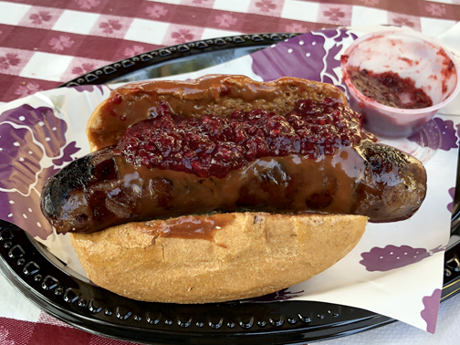 Usually all the food is great, but this year I was left unimpressed overall. That being said, there were a few things that did blow me away. The handmade boysenberry cream soda, dubbed Calico Soda, is a holdover from last year’s festival that is featured in the park year-round now and is just fantastic. The boysenberry elote – grilled corn on the cob smothered in boysenberry butter, boysenberry mayo and cojita cheese – was a unique take on the classic street food and a nice break from some of the other heavier foods. At the Starbucks just outside the front gate, there is offered a boysenberry frappuccino that tastes like a slice of pie in a cup. That is one definitely not to miss, though not advertised anywhere but inside the Starbucks. And the clear favorite of the day was the boysenberry grilled sausage with boysenberry mustard, boysenberry ketchup or boysenberry relish. The sausage itself is blended with boysenberries so even those who don’t use condiments still get some berries. And though everything else offered on the card is a taster size, this is a full sausage. Hands down, the favorite of the festival. I wish I had saved more tasting tickets for this booth.