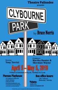 “Clybourne Park” explodes into two outrageous acts set fifty years apart. Act One takes place in 1959, as nervous community leaders anxiously try to stop the sale of a home to a black family. Act Two is set in the same house in the present day, as the now predominantly African-American neighborhood battles to holds its ground in the face of gentrification. Written by Bruce Norris, and directed by Tory Torissi, it runs April 5 through May 5 at the Theatre Palisades Pierson Playhouse in Pacific Palisades. For tickets call 310-454-1970 or visit www.theatrepalisades.org.