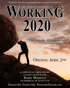 “Working 2020” explores what work means to different people in different circumstances in the U.S. today, adding new characters, and this time focusing on the sadly relevant slide from middle to working class. Written by Bobby Moresco, it runs April 5 through May 10 at the Whitefire Theatre in Sherman Oaks. For tickets call 818-687-8559 or visit www.whitefiretheatre.com.