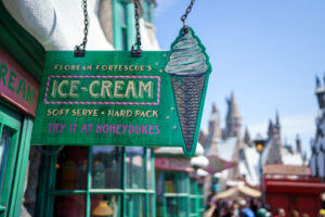 The cold version is an old standby – the classic taste of the land since opening in 2009, the frozen version is refreshing on a warm Hogsmeade day, and the hot butterbeer is a comforting cup of cheer, perfect for those brisk evenings, especially around the holidays. Whichever one you choose, be it a drink version or one of the other treats, you can’t miss. Honestly, it’s hard to beat a cold glass of butterbeer on a warm spring day, but that doesn’t mean it can’t have an accompaniment of the same flavor in the form of ice cream.