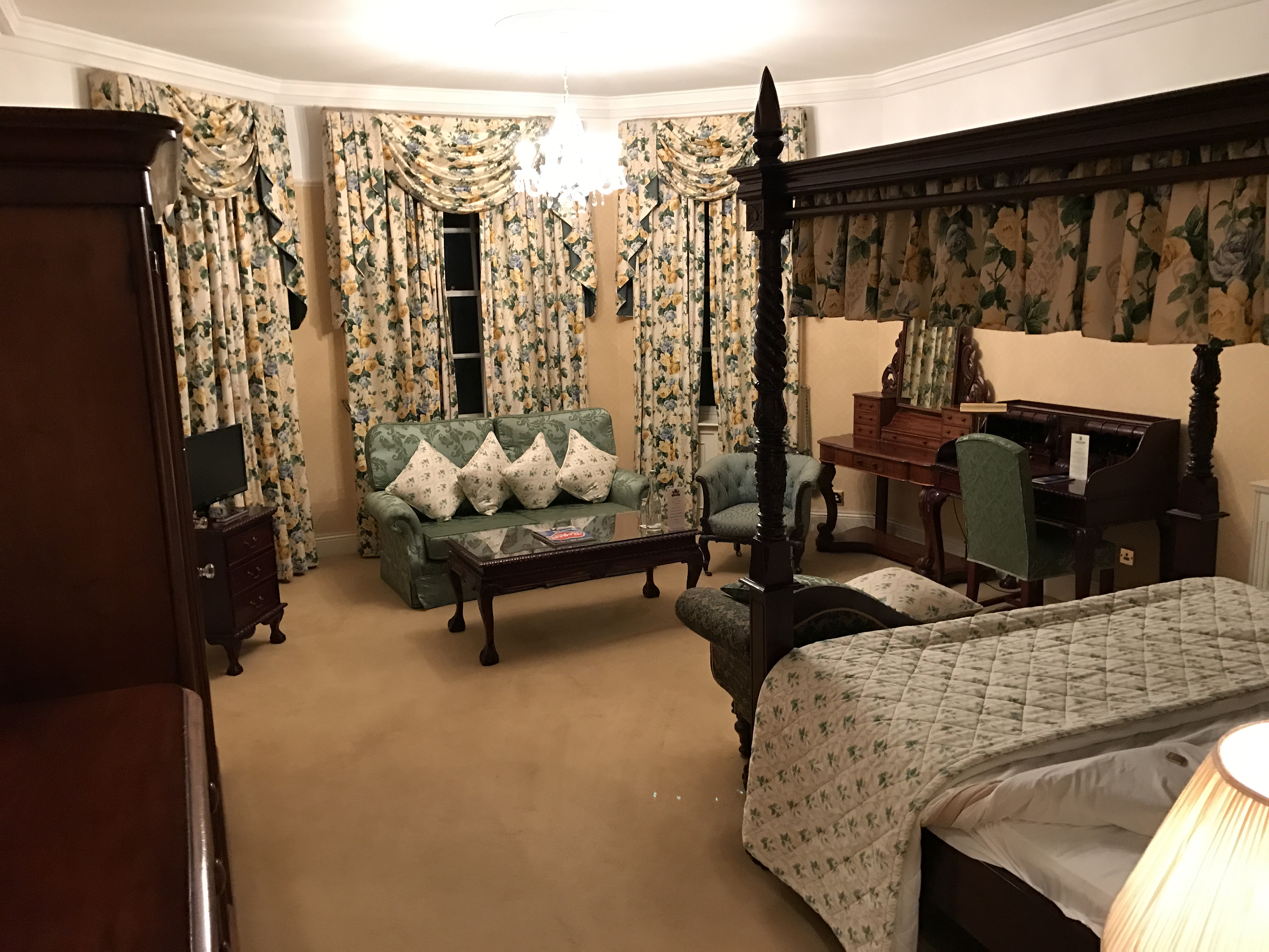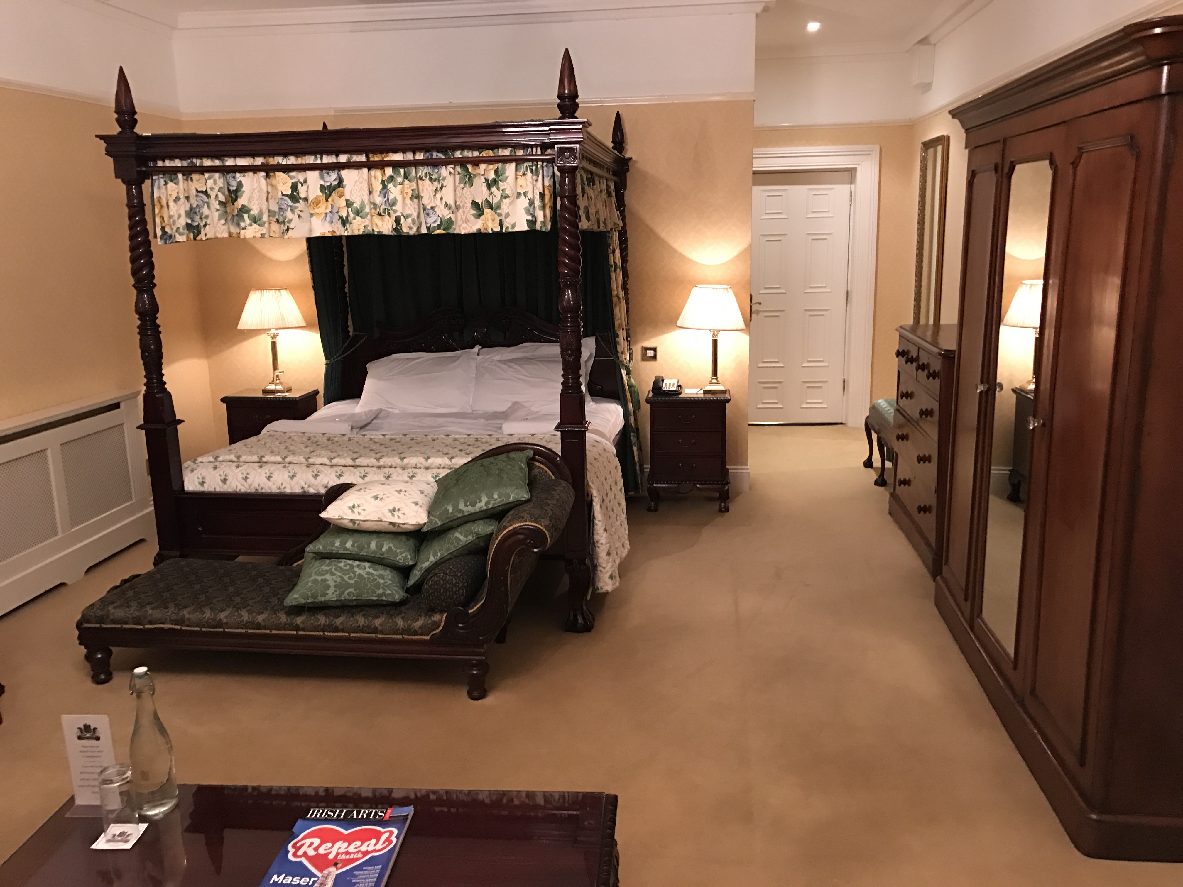 I was invited to stay at Barberstown Castle on my trip to Ireland and, I must say, it was one of the nicest hotels I have been to. With a huge four-post bed, big bay windows overlooking a lawn and a chaise lounge sitting area to take in the view, I didn’t want to leave the hotel. All of the furnishings were either antique or looked the part. The bathroom was fancy without being opulent and included a bidet, which is a unique experience for one who has never tried it.