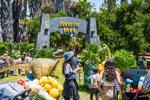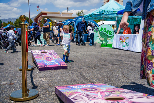 Parents and children alike enjoyed a range of activities from live music and dance performances to arts and crafts, a dinosaur walkthrough, soccer game trials, beanbag toss, bounce houses, slime-making and more. Even Curious George got in on the action, greeting guests inside the covered area of the Autry Museum.