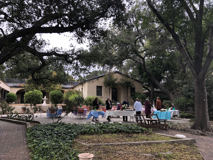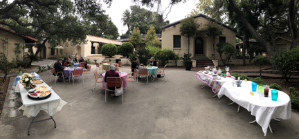 The tea was held on Saturday in the courtyard of the sanitarium and featured teas, cakes and sandwiches. Speaker Rebecca Marnette demystified tarot cards in her talk on oracle divination, leading a lively discussion by all in attendance. The area was decorated in bright spring colors despite the chilly mid-60° weather and overcast sky.