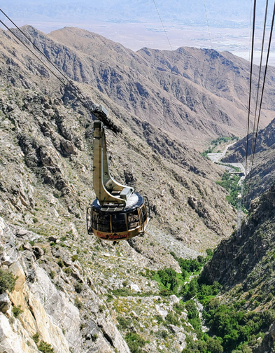 The tram is pulled by 12,000 feet of cable and passes through five huge support towers along the way. At each tower, the car shimmies and shakes, giving riders a roller coaster thrill. Inside the tram, all passengers got great views of Coachella Valley because the car rotates 360 degrees. According to officials, these are the world’s largest rotating tram cars!