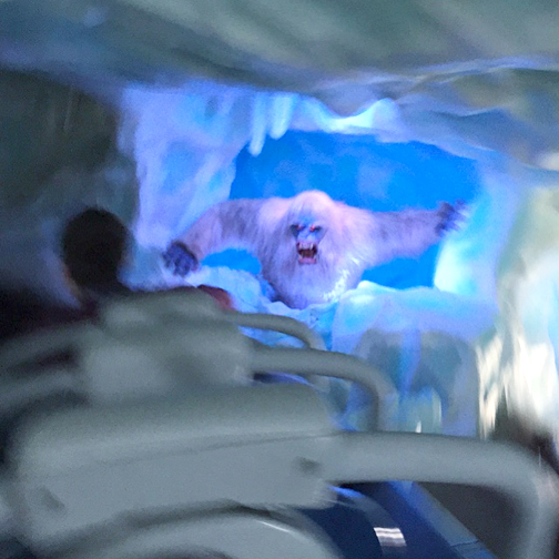 The Matterhorn gets touched up with a new coat of paint, new set pieces and a new Abominable Snowman. Since 1978, the Abominable Snowman, named Harold, has been scaring off wayward bobsled riders, protecting his peak and the crystals that lie within. Harold is now 37 and, although he still looked great, it was time for some work to be done. He has stood stagnant in his spot since 1978, growling and waving at guests as they pass. Now Harold follows guests up the main chain lift hill, peering through thin ice walls, then at the first split in the track, in full Audio-Animatronic motion, he raises up out of his icy cavern, growling and leaning over towards the passing bobsled trains. In addition, the icy crystal cavern has now become a scene tied-in with the theme and Disney history. The bobsled trains and the old Sky Buckets ride vehicles lay crashed and slashed by Harold, suggesting that the Sky Buckets closed due to Abominable activity. Really cool to be part of this new iteration and better suited to the overall theme than the crystals were.