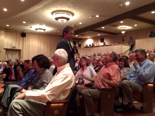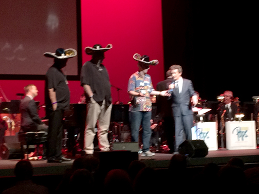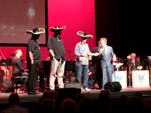 Short welcomes his Three Amigos audience volunteers onstage to take part in “The Ballad of the Three Amigos”