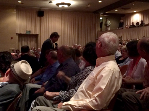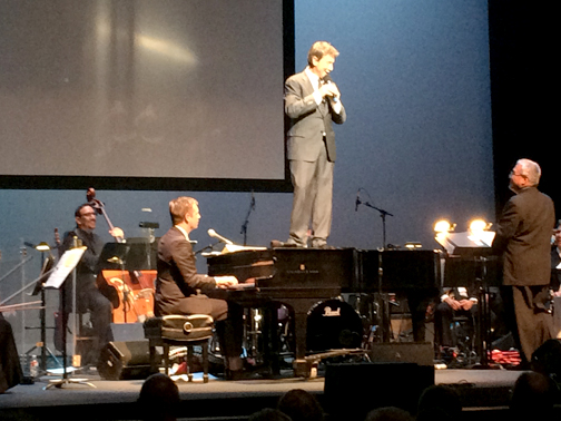 A night of comedy and music culminated with visits from some of Short’s most loved characters. With incredibly fast costume changes and makeup prosthetics applied, he emerged as Irving Cohen, songwriter of fame from Saturday Night Live. After a few minutes with Cohen, Short disappeared again for another change and more makeup, returning as Jiminy Glick from his show in the early 2000s, “Primetime Glick.” As a celebrity interviewer, he held an interview with Glendale celebrity and actress Emily Hardy, much to the delight of the crowd.
