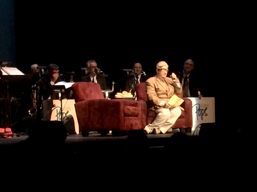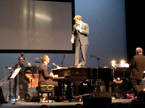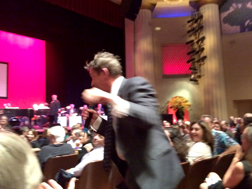 Short jokes onstage with Glendale Pops conductor Matt Catingub