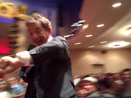 But what is a “Three Amigos” song with only one Amigo? So Short brought three audience members up on stage with him to be the Three Amigos. They were incorporated into the act both as foils for jokes and props, and even gave the Three Amigos salute in time with the song.