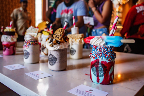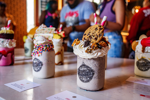 At the Dessert Foundry, creativity takes center stage, embodied in its over-the-top collection of milkshakes. Whether it’s a slice of cake, an ice cream sandwich, a brownie or a Rice Krispies Treat, there is usually something large and eye-catching sticking out of the top of each of the faux mason jar milkshake cups to pair with the flavors of the ice cream inside.