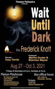 Written by Frederick Knott and directed by Tony Torrisi, it runs Aug. 27 through Oct. 3 at the Theatre Palisades Pierson Playhouse in Pacific Palisades. For tickets, call (310) 454-1970 or visit www.theatrepalisades.org.