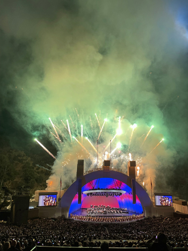 They weren’t disappointed. The Bowl’s shell turned all colors of the rainbow, matching the vibrant colors of the exploding fireworks.