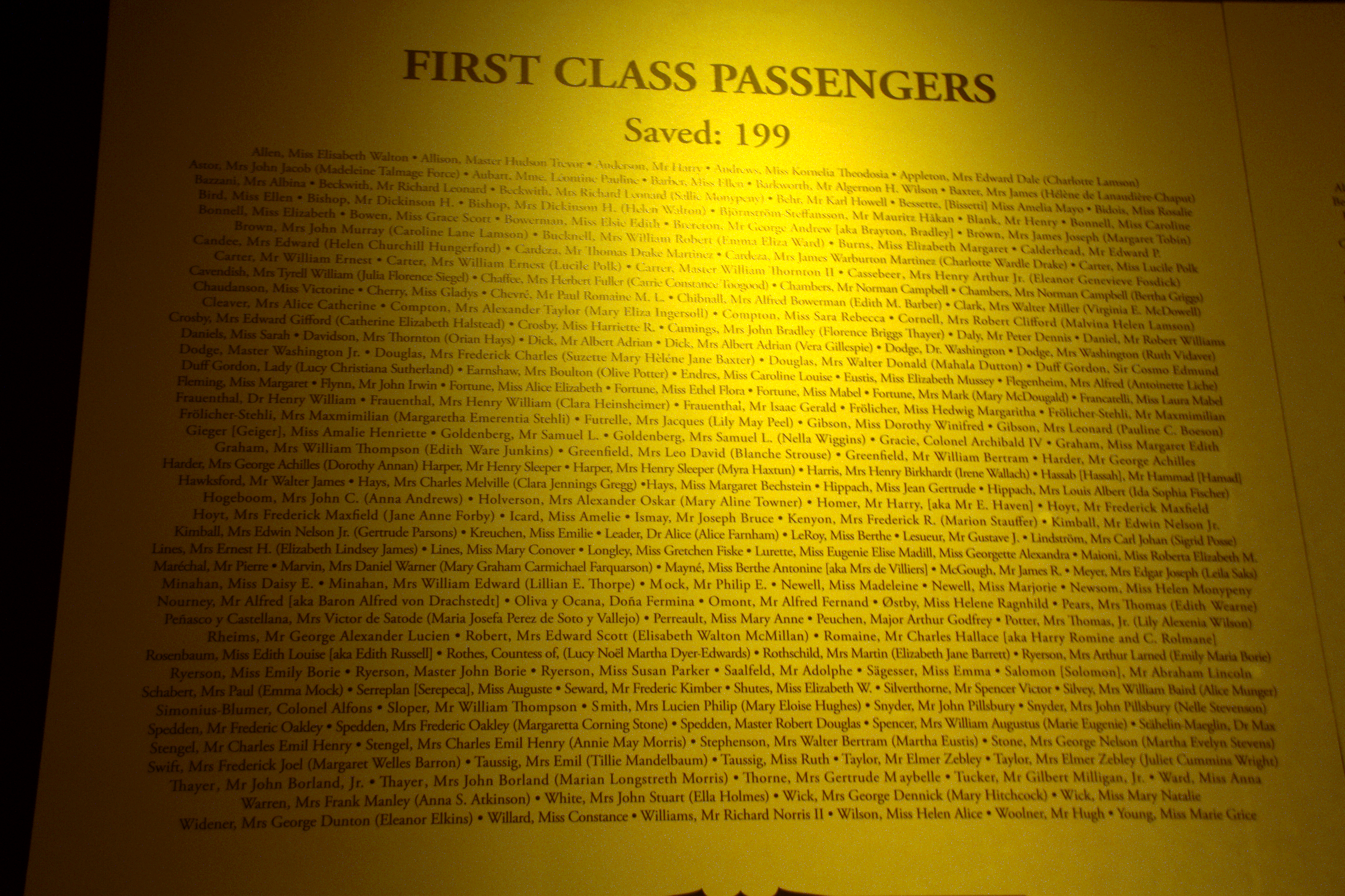 Upon entry, each guest is given a boarding pass with a name and information of an actual passenger aboard the Titanic. Throughout the exhibit (depending on the passenger and how much is known about them) guests will learn about their person and at the end, where a wall lists names of all those souls aboard and whether they were saved or lost, guests can find the fate of their passenger before exiting through the gift shop.