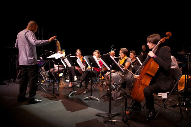 Los Angeles-based collective Bridge to Everywhere performs for the last concert of the 2019 Brand Plaza Series. The program explores connections found across diverse musical traditions, including Hindustani and Carnatic classical music, traditional West African music, Mexican folk music, Arabic music, Western classical music, and jazz.