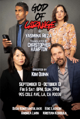 Written by Yasmina Reza and directed by Kim Quinn, it runs Sept. 13 through Oct. 13 at the 905 Cole Theatre in Hollywood. For tickets visit www.carnage.brownpapertickets.com.