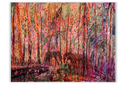 Kira Maria Shewfelt. The Sanctuary, oil on linen, (Diptych, each 55 x 83 x 1.5 inch panels), 2023-24.
