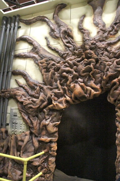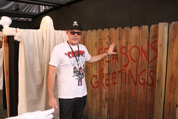 “And that’s actually controlled by a puppeteer who’s off-set, and he’s got a camera on the guests [with] a little monitor. He can blast what they think is pumpkin guts and juice all over them as they walk through the scene,” Murdy said.