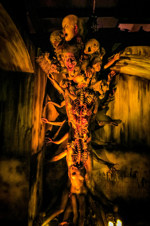 The other new maze is called “Wax Works” and it is a peek inside the deranged minds of the haunt designers. Set in a wax museum gone wrong, the designers didn’t just stop at a wax figure come to life or some half-wax, half-flesh victims. They really came up with some unique creatures that defy description. Honestly, it’s hard to impart the horrors that can be found in this maze because there is no frame of reference to liken them to. Maybe something like John Carpenter’s “The Thing?” But even that doesn’t hit the nail on the head. I love a good, unique maze and this one surely is that. Suffice it to say, this is one of the more creative venues Knott’s has ever done in terms of specific monsters and animatronics.