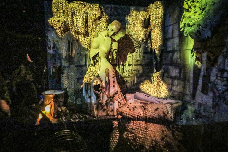 What I like about Knott’s overall, but specifically in this maze, is that the addition of new tech as years go by doesn’t get in the way of the good, old fashioned haunt that it’s putting on. So often we see a haunt that invests lots of money in a new technology and then features it prominently – so much so that the rest of the haunt almost scales back to show off the new tech even more. But that isn’t the case here. There are some great projection effects and some fancy rigs so characters can fly, but these don’t overtake the haunt. The heart of this maze is the clever, original-yet-classic design of sets and characters that pulls from everything that longtime fans of the park have come to know then puts them all in one coherent storyline with some good scares.