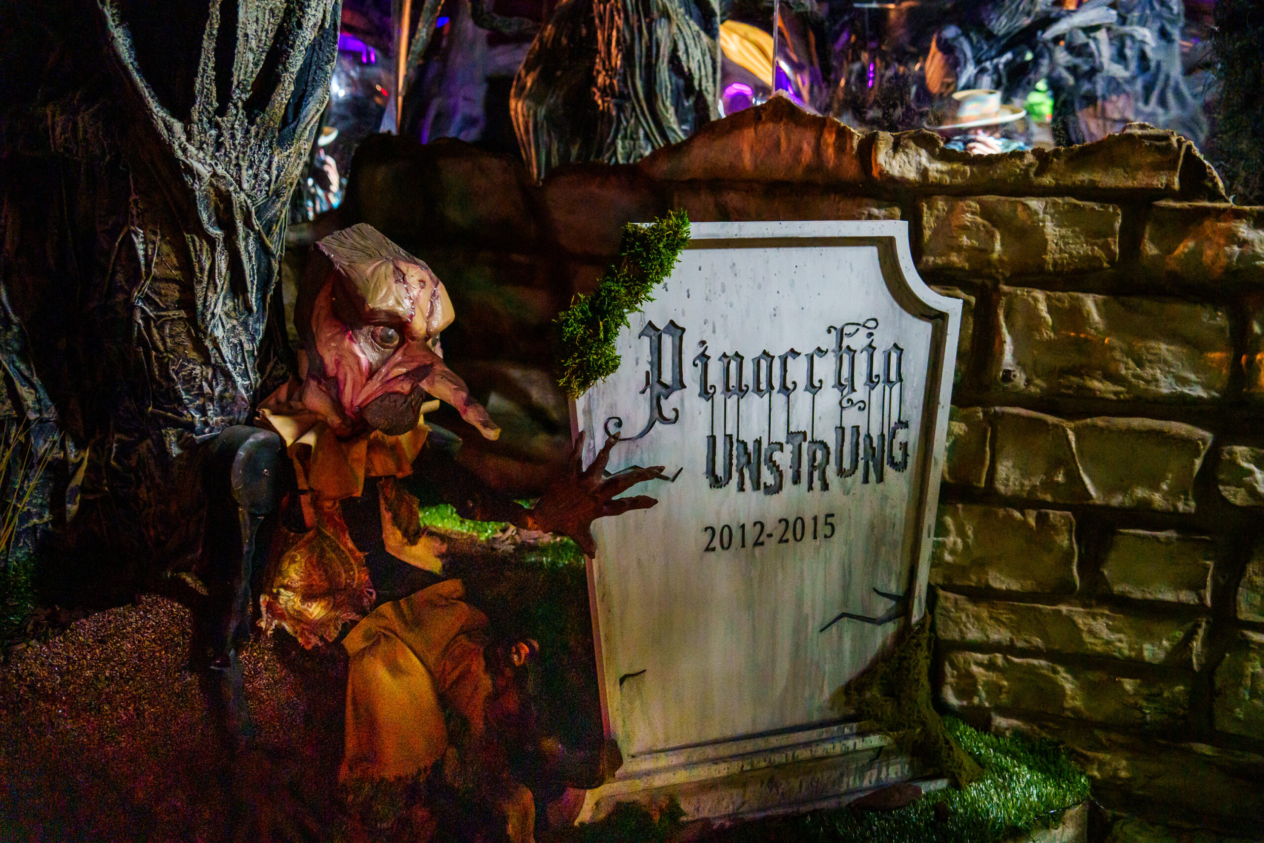 But the highlight of the night, and indeed the star of the show, was the new/old maze, “The Chilling Chambers.” This new maze is a soft reboot of a past maze from 1973, “10 Chilling Chambers” – the very first maze in the haunt’s storied history. The Keeper welcomes all of us “Fringies” to his haunt that pays homage to some of the greatest mazes from the last 50 years. At one point, guests literally walk through a graveyard where each headstone marks a notable maze from the last few decades, and guests cry out to point at their favorite mazes as the memories are drawn from their minds like a ghost dragged from a grave. It was nice to relive some of those best-ofs, and the maze itself is fun even for those neophytes who don’t study the haunt’s history.