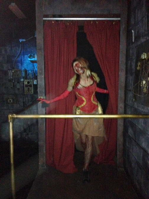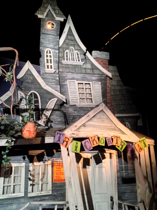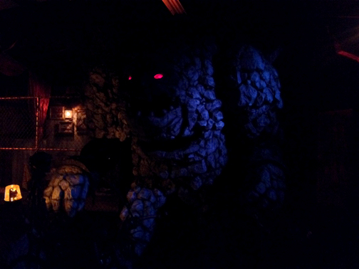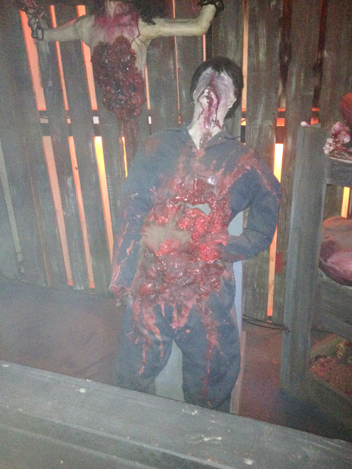 Cons: Monsters don’t really know how to scare. The sets are built with obvious hides for scarers to wait in, yet the scare-actors just stand there in plain sight. When you walk up to them, you expect another monster to jump out from behind you or from the side or something but there isn’t anyone else. Just one monster that growls as you pass. This is in most of the mazes, but painfully apparent here.