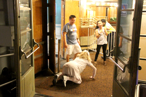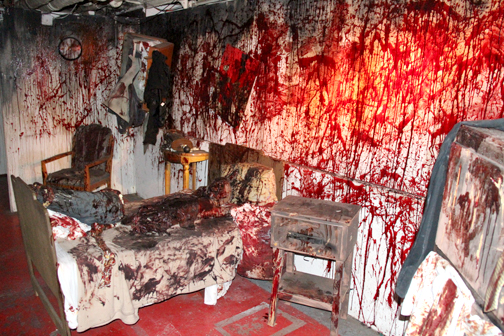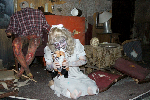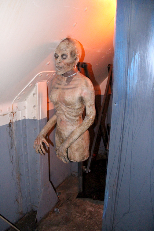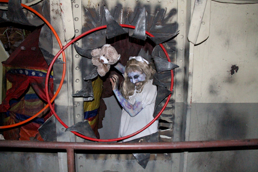This dissociation is found in many of the mazes – spirits Graceful Gale, the beautiful lovelorn woman who disappeared without a trace on the Atlantic crossing, Samuel the Savage, a violent killer who was sequestered in room B340 and found ripped apart when the journey was over, and Scary Mary, a little girl who drowned in the pool aboard ship, just to name a few. Their mazes, respectively, are Soulmate – a walk through the ship with various suitcases and an occasional stateroom, B340 – a walk through the ship with stateroom doors, a furnace and cannibals, and schoolhouse scenes with torturous nuns, and Lullaby – which was actually a little closer to where it should be – a tour of watery fixtures set in the hallways and recesses of the ship leading to a climax in the very pool where Mary drowned.