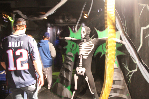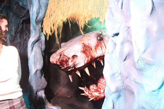 The Depths is an interesting beast. It’s an ocean-themed maze but also somehow a mine shaft? It doesn’t make a whole lot of sense but it is a really fun maze. The official park map invites guests to “find your way around ominous caverns to discover if the superstitions are true or not.” But that doesn’t give much more to go on. Basically it’s a mining operation taking place within sea caves, so the first quarter of the maze is all mine-themed with gas mask wearing miners and heavy equipment, and the rest of the maze is ocean-themed, with sea animals and sea animal/miner hybrids jumping out to scare guests. The use of lasers and fog in this maze is spectacular, creating a unique environment unlike anything I’ve seen to date. So, weird theme aside, this may be the best maze in the park.