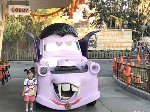 It’s not a bad event; it’s just that after eight years without a change in offerings, it feels a little stale. That was until this year. It has now been kicked into high gear with the opening of the other park – Disney California Adventure – and it is a welcome addition. The added Halloween-themed acreage at DCA makes the crowds feel a little less intense by spreading out the fun between the two parks. For me and many like me, those who are in the park for a holiday event like Halloween make those themed attractions a priority because they are limited time events. I can see regular Cars Land any old time; I’m here for the pumpkin stuff. But by adding more Halloween enhancements to DCA, it gives guests a reason to head across the way, which thins out the crowds. Regular old Cars Land being decorated for “Haul-o-Ween” is a cute way to help crowds flow over to the other park.