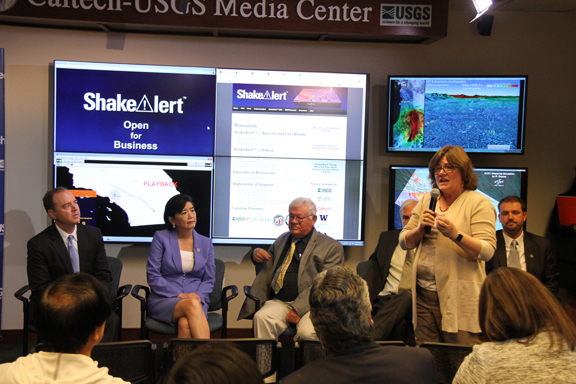 Yesterday, Wednesday, the long-awaited ShakeAlert Earthquake Early Warning System was officially rolled out and is open for business. Leaders in earthquake research, including Dr. Lucy Jones (pictured above), came together with U.S. Representatives Adam Schiff and Judy Chu to announce the debut of the system at Caltech. Check CVWeekly for full coverage of this event in next week’s paper.