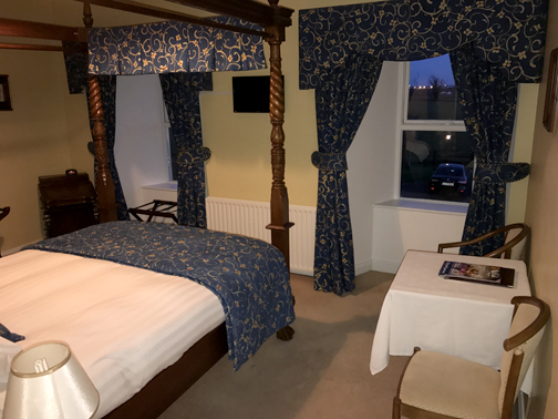 I enjoyed the seafood chowder and a perfectly grilled peppercorn steak, which came from a local butcher, and a plate of local cheeses. My wife had the oven baked filo tartlet of Bluebell Falls goat cheese with house-made red onion marmalade and leaf salad, a baked fillet of hake with herb and lemon crust, herb mash and white wine sauce, and the Toblerone cheesecake. And all of this came with a side of veggies and, of course, potatoes. It was just incredible and when we were finished we went off to the room full and tired.