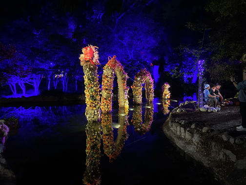 “It’s our first time going to the ‘Carved’ event, but we have gone to Descanso Gardens before,” Maria said. “Everyone is in the Halloween holiday spirit. The lights are awesome. It is a nice family atmosphere.”
