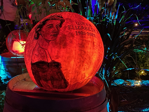 The highlight of the “Carved” event was the carved pumpkins that boasted a variety of designs, including ones paying tribute to movies, popular culture and people. There were memorial pumpkins to honor people who died during the last year or two, including Nichelle Nichols from “Star Trek,” Vin Scully, the voice of the Dodgers, Foo Fighters drummer Taylor Hawkins, Queen Elizabeth II and legendary actress Betty White.