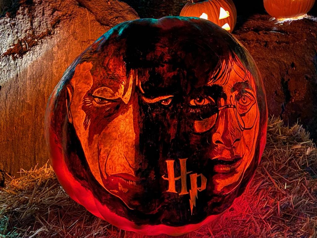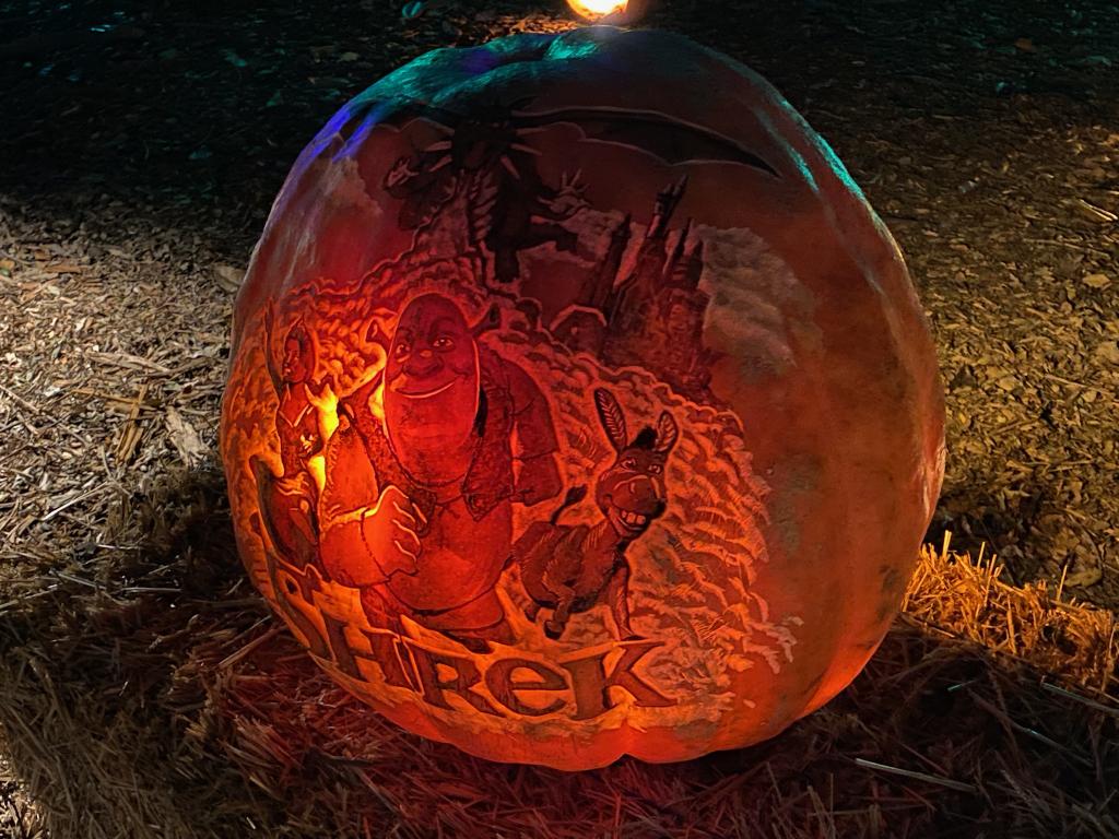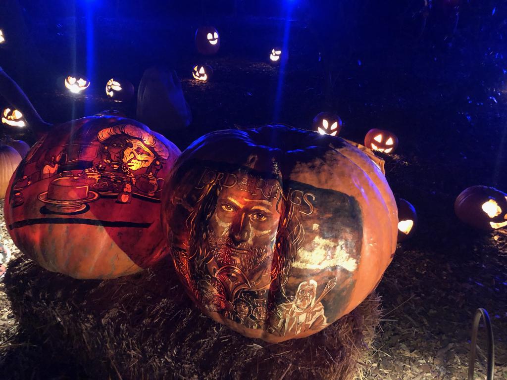 “We carve about 500 pumpkins a day or 350 pumpkins in four hours as a team,” Griffen said. “The pumpkins can take four to 20 hours to illustrate and carve. ‘The Lord of the Rings’ pumpkin took 12 hours to illustrate the design and four hours to carve. The more detail in the pumpkin, the more time it takes to carve. We have 30 large illustrative pumpkins. If one rots, we have extra ones to replace it. We replace the larger pumpkins every few days, so they always show their best faces throughout October.”