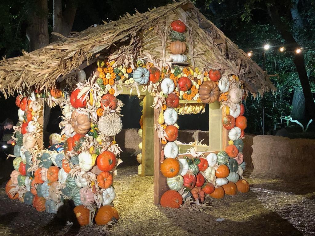 Another favorite haunting place for children of all ages was the moonlit “cackling” forest in Oak Grove. Oak trees were surrounded by raised platforms filled with multi-colored lights, which sounded a cacophony of cackling noises whenever they were stepped on. Kids and adults ran round the trees in circles, jumping on the light buttons to hear the touch-activated cackling calls. There was also a hay maze to explore. If families tired of the playful fun, they could visit the nearby harvest festival themed food and beverages.