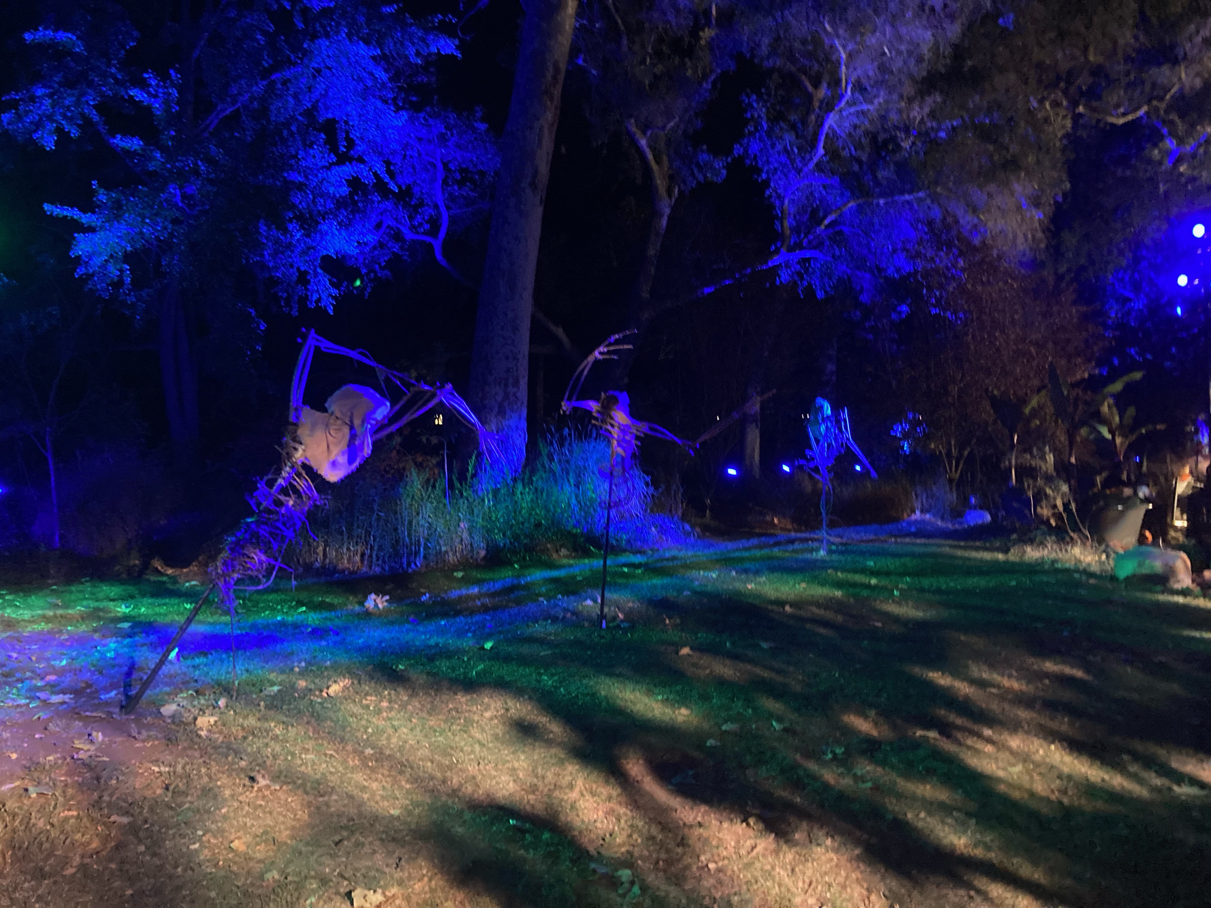 The addition of lights and autumn decorations lent to the spooky ambience. Inside the Descanso Gardens pond lurked the Loch Ness Monster, created out of pumpkins and autumnal squash. Towering trees were lit for the public to admire. A huge spider web was decorated near another tree, complete with a giant spider – made from pumpkin.