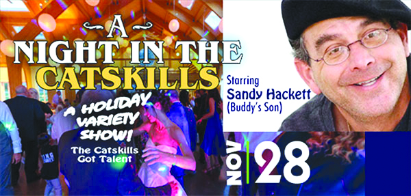 “Another Night in the Catskills featuring Sandy Hackett (Buddy’s Son)” Laugh your way into the holidays with “Another Night in the Catskills!” There will be music, comedy and a few surprises. Sandy Hackett (comedian Buddy Hackett’s son) returns with material sure to make your belly shake like a bowl full of jelly! Many of the 20th century’s great performers honed their skills in the Catskills. In its heyday, the Catskills, or “Jewish Alps” (also called the Borscht Belt), consisted of 330 resort hotels of all sizes, a few hours north of New York City.