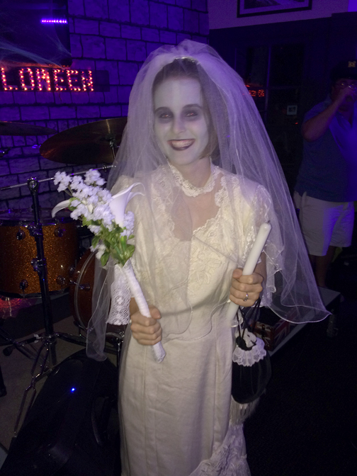 Ocean View Bar and Grill held a Halloween costume contest on Friday night to celebrate the holiday. The bar was decorated and a live band played.Nick (below center) won ‘Best Overall’ as an Indian chief.Sabrina Walentynowicz won ‘Scariest Costume’ as the bride from “The Haunted Mansion.”One contestant in the contest wore a politically inspired costume.