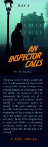 “An Inspector Calls” This play occurs when a young woman meets with an untimely demise and a respectable family is subject to a routine inquiry in connection with the death. An inspector calls to interrogate the family and it is revealed that each member of the family is implicated lightly or deeply in the woman’s undoing. The friendly and close-knit family at the beginning of the evening is shown up to be selfish, self-centered and cowardly. Good fellowship turns to acid and dislike. A surprising revelation turns up in the end that makes this thriller one not to be missed.