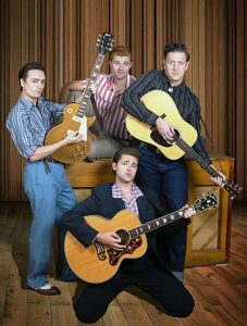 “Million Dollar Quartet” tells the story behind a seminal moment in rock history when four rock-and-roll legends – Elvis Presley, Johnny Cash, Carl Perkins and Jerry Lee Lewis – met by pure chance at Sun Records in Memphis. That serendipitous meeting on Dec. 4, 1956 turned into one of the most memorable jam sessions in the history of music. The Memphis Press-Scimitar newspaper chronicled the session the next day under the headline “Million Dollar Quartet.”