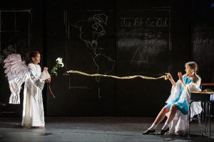 “Mariology” In a mythical fifth-grade classroom, indoctrination explodes into fantasy and rebellion in Nancy Keystone and Critical Mass Performance Group’s form-busting and exuberantly theatrical West Coast premiere. Mariology explores the Virgin Mary as both a source of faith and a weapon of control illuminating Mary’s roles in systems of gender, power and personal agency.