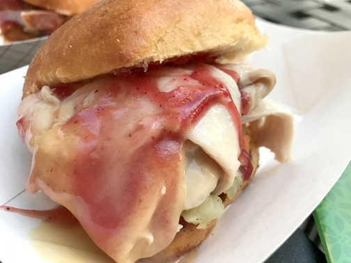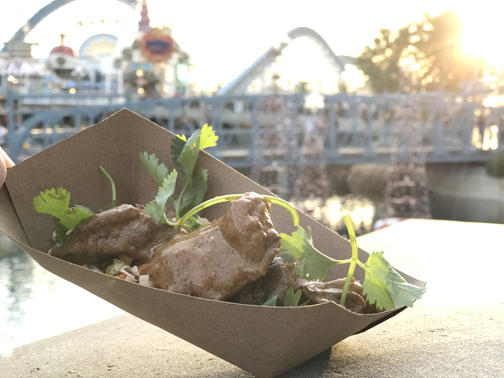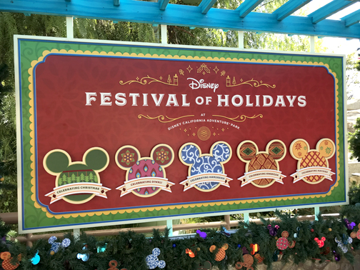 One thing that I really like about the Disneyland Resort holiday celebration is that it is about more than just Christmas. The celebrations of many people and other companies may utter, “happy holidays” to be politically correct as well as not leaving out the non-Christmas winter holidays. But, in my experience, few who say “happy holidays” actually know what are the other holidays. Over at DCA, the Festival of Holidays honors a large selection of winter traditions and foods from Christmas, Navidad, Hanukkah, Yule, Diwali, Kwanzaa and Three Kings Day. Along with short descriptions of each holiday throughout the festival, foods from each culture’s traditions of the winter holidays are served in taster-sized portions, priced per taste, to give guests the opportunity to experience holidays around the world through cuisine. From the Diwali favorites of braised lamb cheeks with Mediterranean cauliflower and pineapple kesari with golden raisins, to the Kwanzaa-inspired foods of Nashville that include hot fried turkey with dill pickles or sweet potato pie, grilled chicken sausage and red beans and rice, there is something familiar and something new for everyone to sample.