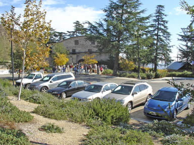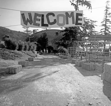THEN »This is a view in the 1970s looking east at the Le Mesnager Barn in what is now Deukmejian Park. At that time it was no longer owned by the Le Mesnager family but was owned by Intervalley Ranch, a development company that planned to build hundreds of homes in Dunsmore Canyon. They leased the barn to an outfit that operated a stable from the barn. The famed Blue Shadows mounted drill team was based there. Here we see corrals to the right, and a welcome banner above during an open house.
