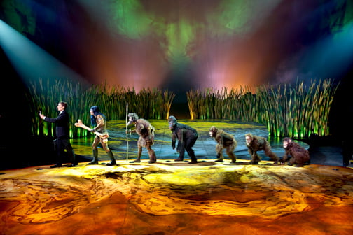 The show was spectacular. Though there were nice little nods in costume and set pieces to our heritage as a species, the real attraction, as always, were the performers. Acrobatics, juggling like you’ve never seen before, Russian bar jumps, rings on automated lift lines, trampoline stunts, and a quintet of unicycling women tossing bowls with their feet and catching them with their heads, among many other displays, make this show spectacular and awe-inspiring.