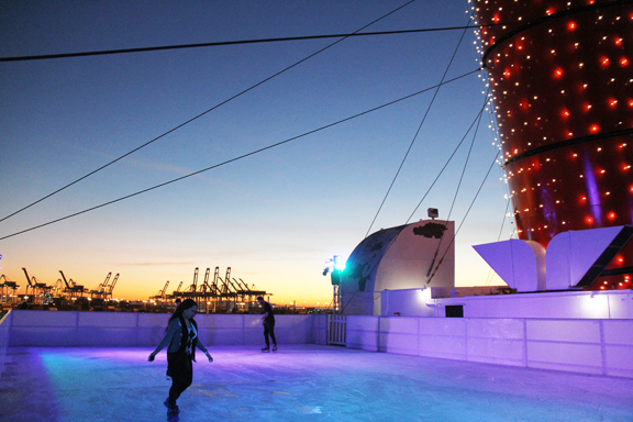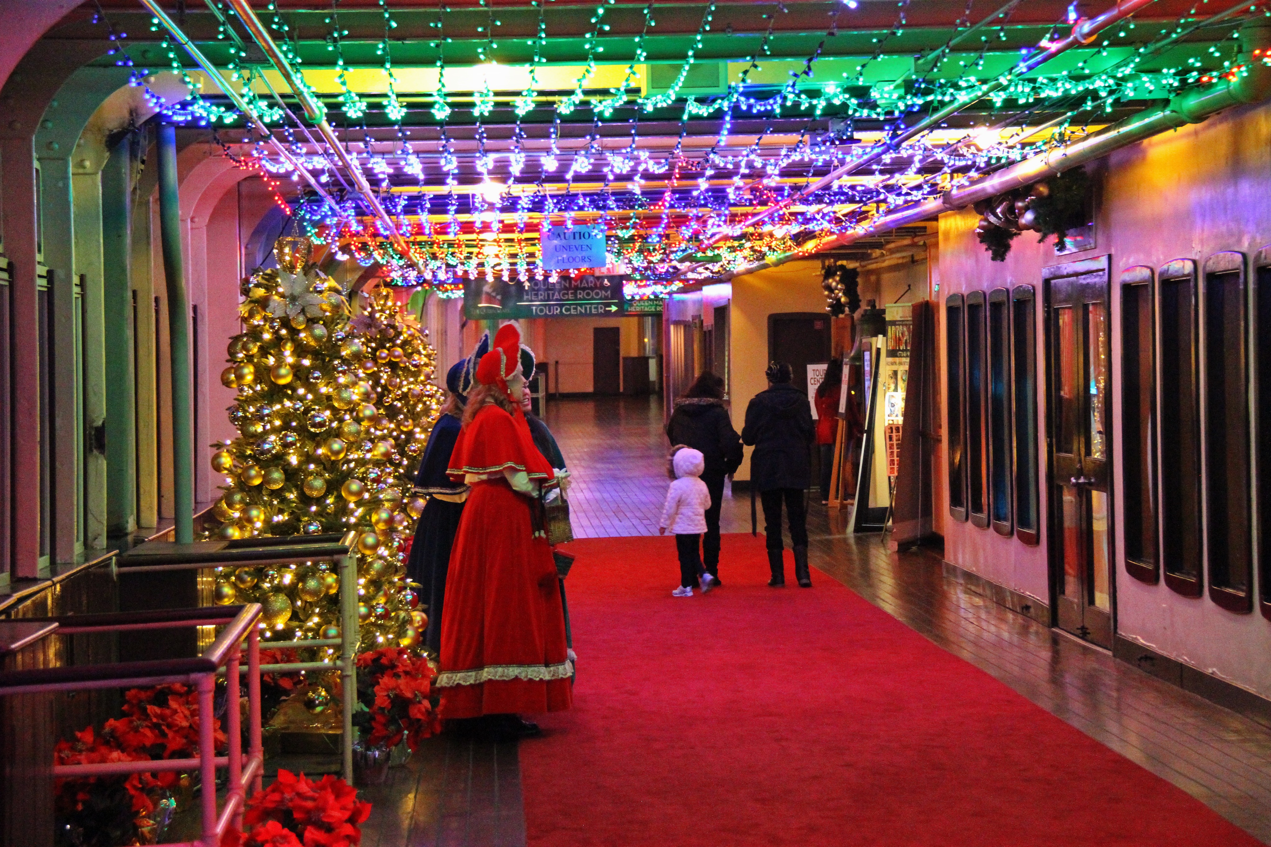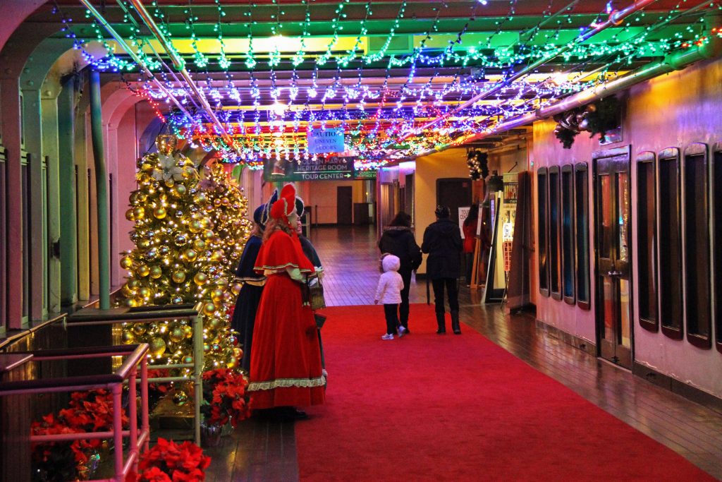 The Queen Mary in Long Beach is not a theme park in the same sense as the others, but it also offers a great time. For years, its holiday event has been CHILL – a winter-themed playland in the lot in front of the ship featuring ice skating, festive cocktails and food offerings and activities for kids. But this year, the fun moves onto the Queen Mary herself for the newest celebration: Queen Mary Christmas, Where Holidays Set Sail! Now through Jan. 6, guests can come explore all there is to do aboard the ship and take in the beautiful decorations strung about the halls and on the smoke stacks. This is less of a full-day event like the previously mentioned parks, but more of a nice place to walk around after having dinner aboard the ship. The nightly tree lighting is rather unique in that the 80-foot tree is made entirely of more than 45,000 LED lights strung up to a mast on the bow of the ship, which blink and dance along with holiday music. The aforementioned ice skating has returned, this time on the top deck of the ship, just at the base of the smoke stack all lit up in lights, and the ship’s main hall and indoor promenade decks are great places to stroll and take in the decorations while listening to live carolers.