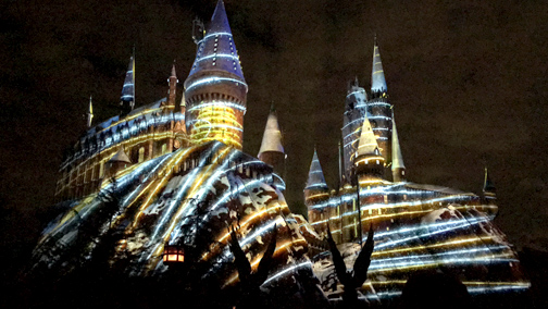 The main attraction for Christmas in the Wizarding World of Harry Potter is the spectacular nighttime light show. Using the same incredible projection technology that debuted in the simply titled summer show, “Nighttime Lights at Hogwarts Castle,” the new Christmas light show brings the castle to life as present-laden owls, dancing lanterns and magnificent Christmas trees appear like magic on the walls of the castle.