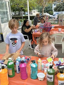 Since 2015 Hrenda – a strong believer in the cohesiveness of community to bring about positive change – has designed installations for the holiday season that include having local residents help create the final artwork. The basic components and shapes are designed and created by Hrenda, typically from cardboard, found objects and trash. Then residents of the Adams Hill neighborhood are invited to the Adams Square Mini Park to finalize the art using paint, brushes and Hrenda’s direction, which is generally “Just go for it!” People of all ages typically participate and this year (as in the past) the ages ranged from toddlers to grandparents.