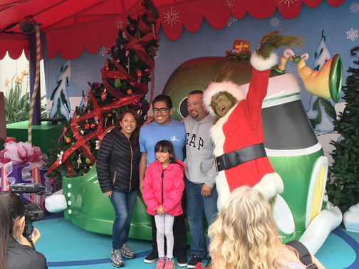 The holidays are full of laughter and cheer, giving and gathering, eggnog and gingerbread. And each year, local theme parks pull out all the stops to bring holiday cheer to those who visit them. This week, we head over to the theme park closest to the Crescenta Valley – Universal Studios Hollywood. The Grinch has invaded the park once again to celebrate the secular Christmas season after that fateful year when he stole the whole holiday.