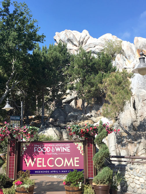 After five years, the California Adventure Food and Wine Festival finally came back. The beloved classic festival was put on hiatus after the 2010 event due to construction of Cars Land in 2011 and, despite massive public outcry and questions online, the event was not brought back when expected in the 2013 season. Now, six years after the last festival tents were folded, the California Adventure Food and Wine Festival returned from April 1 to May 1, with additional demonstrations and seminars held on weekends. It’s a difficult call to make, but the best dish of the day was the white cheddar ale soup with bacon in a Boudin sourdough mini-boule, a thick, almost chowder-like soup with cheese and crumbled bacon in a little tiny sourdough roll. Or possibly the Meyer lemon macaroon with blueberry dust, blueberry marmalade and Meyer lemon cream. Honorable mention goes to the deep-fried artichoke chips with spicy aioli, which had just the right amount of spice to give it great flavor but not so much that you need a glass of water, the chilled ahi poke with avocado cream, wakame (seaweed) salad and sesame tuile, and finally the pork belly bao taco, a braised pork belly slab with pickled vegetables on a super light and soft bao bun, served folded up like a taco.