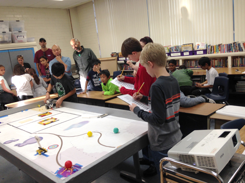 Dunsmore Elementary held it first robotics tournament on Dec. 18. Students in grades five and six participated and formed five teams to compete against each other. Each team engineered and computer-programmed a design that they built into a small-scale robot, known as Lego Mindstorms EV3.