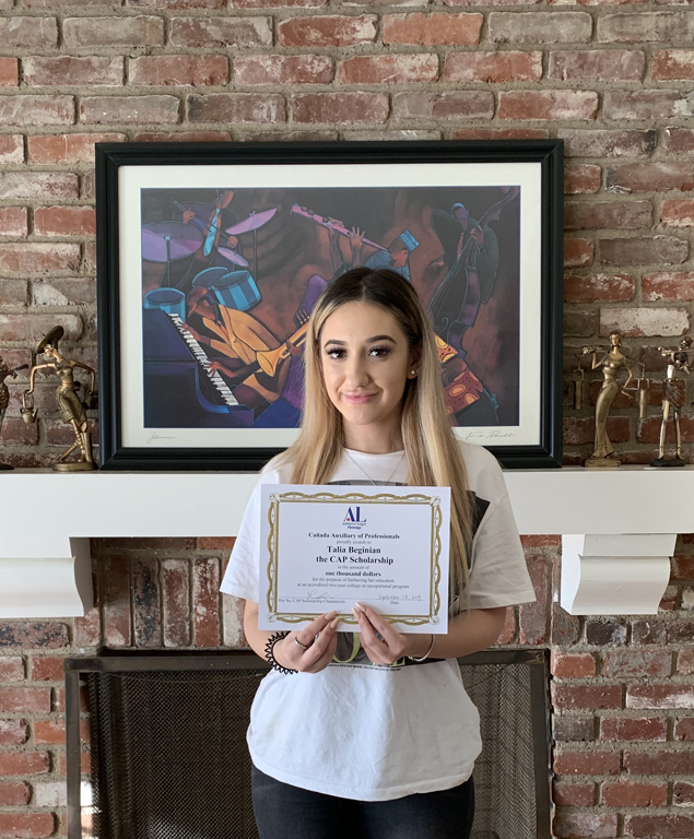 The Cañada Auxiliary of Professionals, known as CAP, has awarded four $1,000 scholarships to local high school graduates who are attending a two-year college or occupational program. CAP is an auxiliary of Assistance League of Flintridge (ALF). Two scholarship candidates and their families attended the September CAP meeting, during which they were introduced to the organization’s membership and the awards were presented.